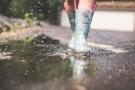 - Het regent vandaag en dan kunnen we in plassen springen