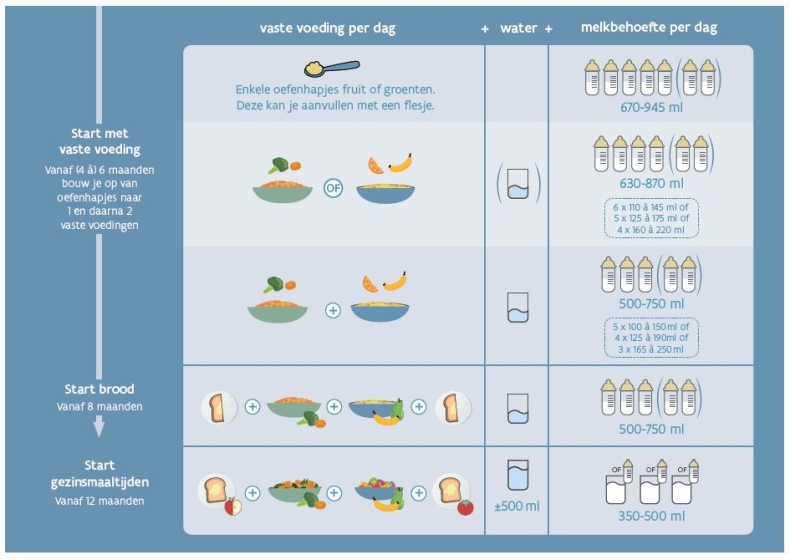 - Op die leeftijd drinkt je baby nog 500ml à 750 ml melkvoeding.
